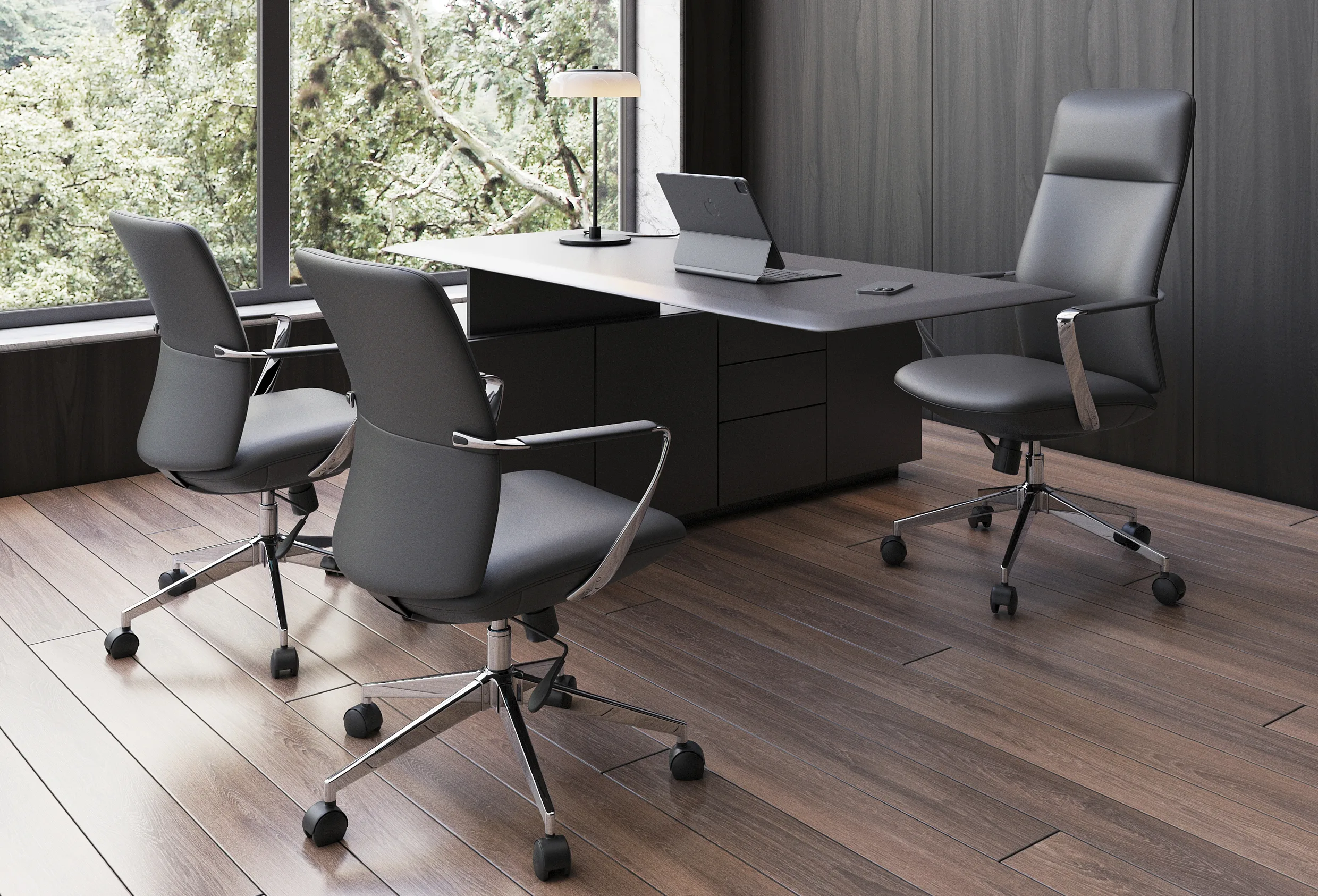 tapiz: en soft revolving leather de color negro.